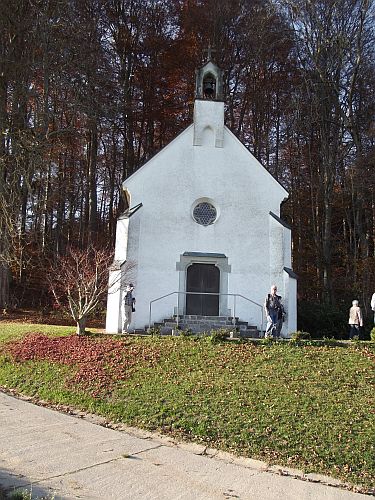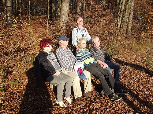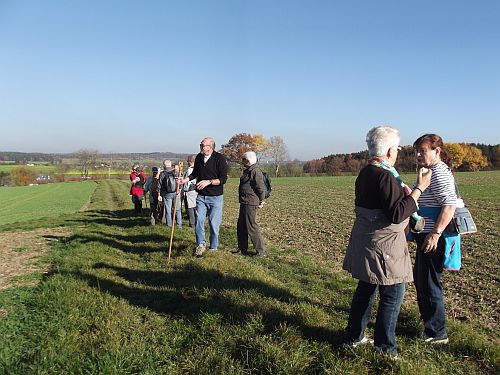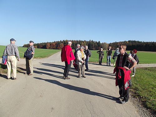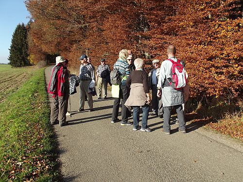 Wer weg will der muss einfach mit. 16 Wanderfreunde aus Mengen und Ostrach trafen sich bei schönstem Herbstwetter und strahlenden Sonnenschein in Unterweiler am Parkplatz bei der Bushaltestelle. Nach einem kleinen Aufstieg auf einen Höhenzug bei dem Ort Laubach genossen wir die Aussicht auf das Ried und zum Sturmberg mit den Windrädern. Durch den Wald wanderten wir in Richtung Königseggwald. Am Waldrand gelegen besuchten wir eine Kapelle und hielten einige Minuten inne und dankten der Mutter Gottes für den schönen Wandertag. Der weitere Weg folgte am Park vom Schoss Königseggwald entlang nach Oberweiler und wieder nach Laubach.