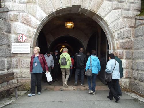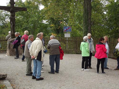 Vom Königsee aus ging es dann mit dem Bus weiter zum Obersalzberg und zum Kehlsteinhaus, das auch als Adlerhorst bekannt ist. Doch die Sicht ins Land war wegen Nebel stark eingeschränkt. Da es auch sehr kühl war, gingen nur wenige mit bis zum Gipfelkreuz.