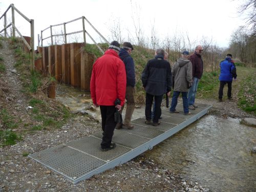 Ein Stück entlang des Sträßleins nach Gunzenhausen, dann ging es links ab, vorbei am Teer- und Aufbereitungswerk . An einem schönen Wegkreuz abzweigend erreichten wir dann etwas aufsteigend die „Jettkofer Hütte“. Vorbei an Jettkofen Richtung Einhart erreichten wir dann den nächsten Baggersee (der Fa. Weimar), der bereits teilweise wieder rekultiviert ist (Badegelegenheit). Vor Einhart bogen wir ab, um auf einem Damm nach Wangen zu gelangen. Von dort folgte ein schöner Weg auf einem weiteren Damm zwischen dem Baggersee und der Ostrach zurück zum Aushangspunkt nach Jettkofen, wo die Wanderung bei einem gemütlichen Beisammensein ihren Abschluss fand.