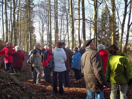 27 Wanderinnen und Wanderer trafen sich bei Frühlingswetter auf dem Viehmarktplatz und wanderten hinauf zum Missionsberg, vor am Kind’les Brünnele, zum Hechtkeller, am ehemaligen Hexenhäus’le vorbei zum Kreuz auf dem Missionsberg. Gerhard Schaudt erzählte uns von den Mühen der Erhaltung des Kleindenkmals. Weiter führte der Weg zum Gedenkstein der Ortsgruppe Mengen, der anlässlich des 100jährigen Jubiläums der Gründung des Schwäbischen Albvereinserrichtet wurde, weiter zum Aussichtsturm der Ortsgruppe, den wir bestiegen. Von dort aus hatten wir einen wunderbaren Blick zu den schneebedeckten Gipfeln der Alpen und ums ganze Umland mit Donau und Ablach. Der Weg führte uns durch den Mengener Stadtwald, durchs Schwärzentäle und der Wohnsiedlung „Grünes Zimmer“ zurück über den Graben in die „Martinsstube“ Bei einem gemütlichen Zusammensein klang der Nachmittag dort aus.