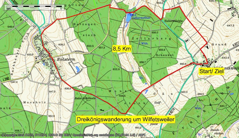 und am Golfplatz Heratskirch entlang, zurück nach Wilfertsweiler.