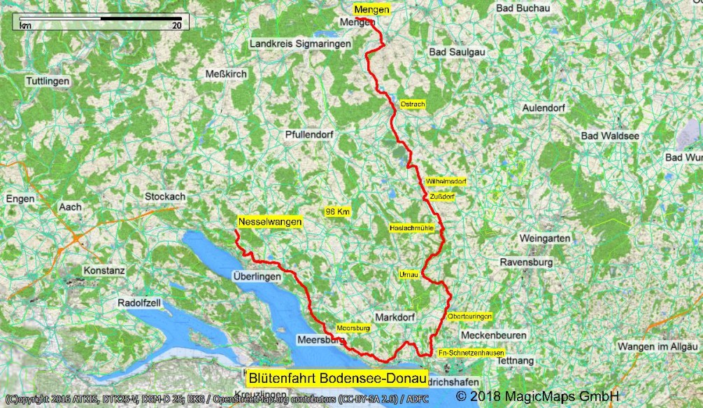 Streckenlänge:  Nesselwangen- Mengen –  98 Km.