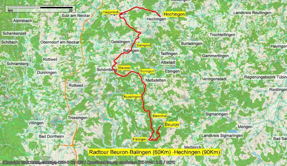 (Abschnitt bis Balingen: Streckenlänge ca. 60 km, 369 Höhenmeter )