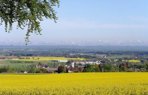 Von hier haben wir nochmals einen freien Blick über’s Land bis zu den Alpen.